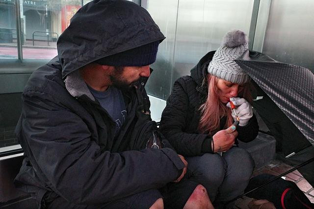 当地时间2023年11月,美国旧金山,当地药物芬太尼肆虐严重,成千上万无家可归的人露宿街头。部分街区毒品吸食和暴力犯罪猖獗,最常见的毒品有芬太尼和冰毒等。视觉中国